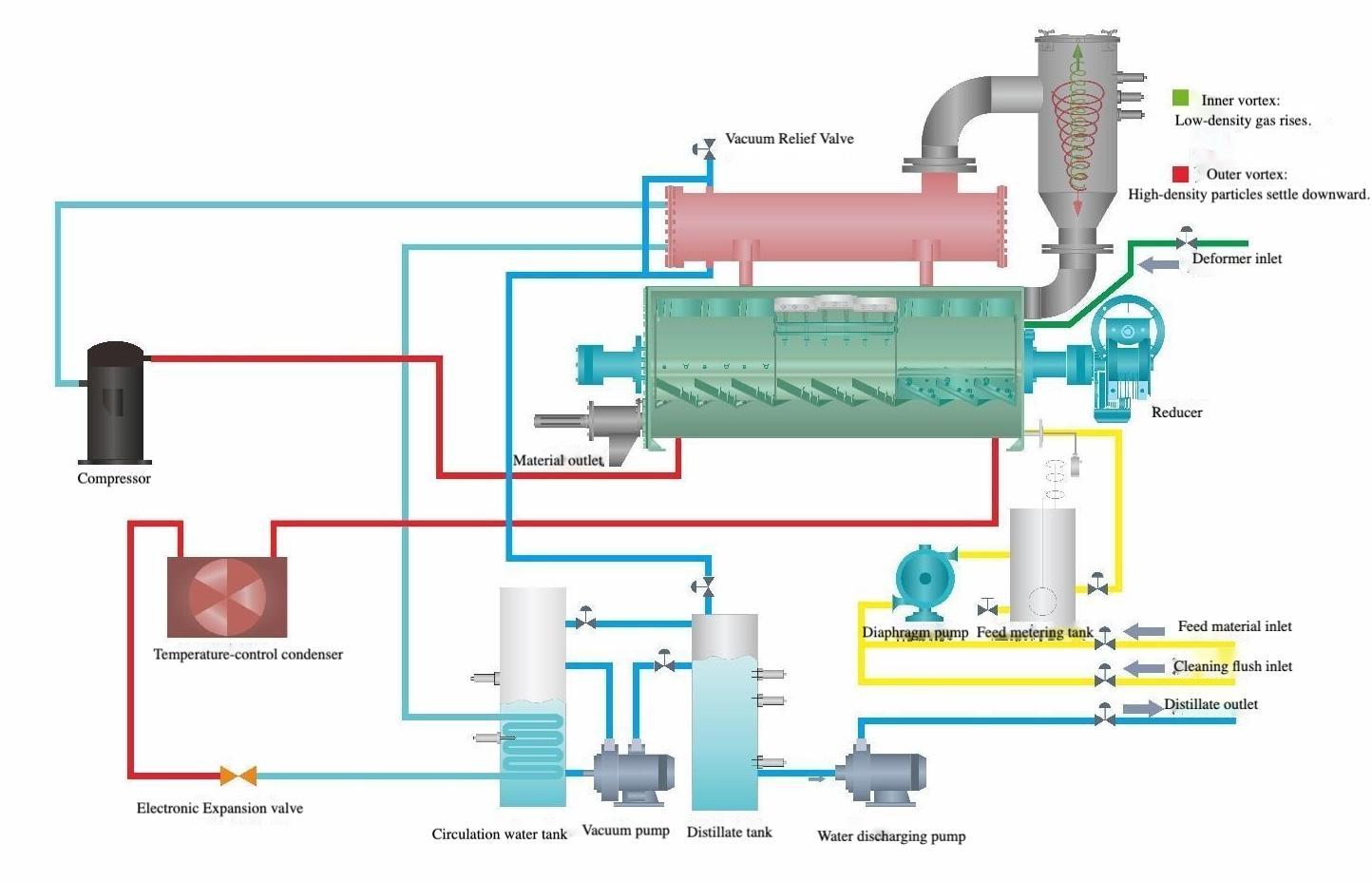 By utilizing an advanced vapor compression heat pump cycle under vacuum conditions, the system achieves low-temperature evaporation with exceptional energy efficiency, reduced operating costs, and stable long-term performance.
