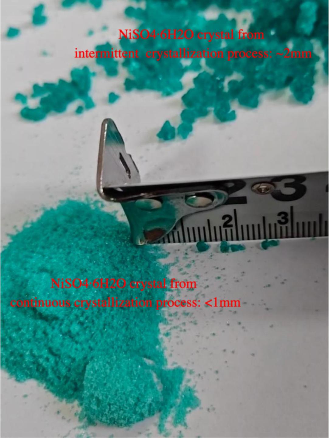 In a continuous crystallization process, the residence time and cooling duration are relatively short, which limits crystal growth. Consequently, the resulting NiSO₄·6H₂O crystals are fine, with particle sizes typically below 1 mm. This process operates continuously, requires a smaller equipment footprint, and is suitable for large-scale production.
